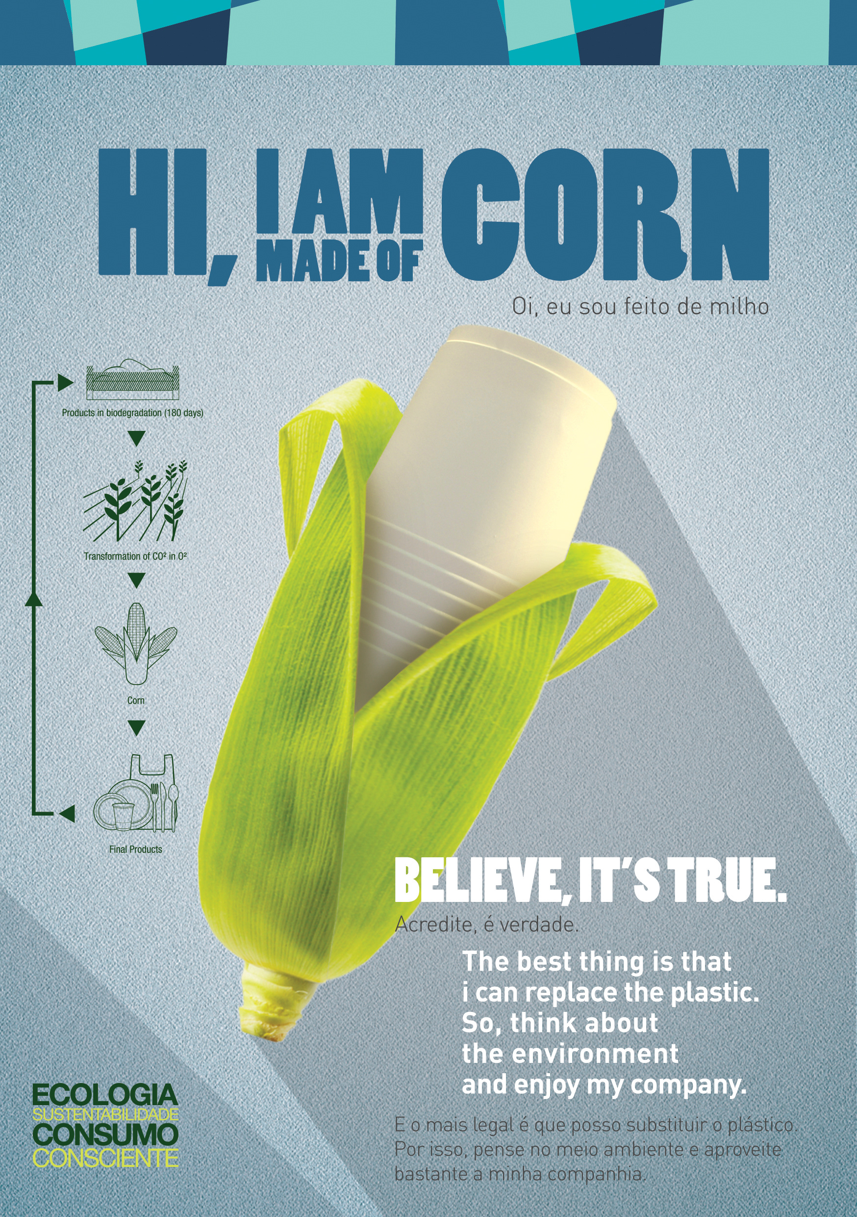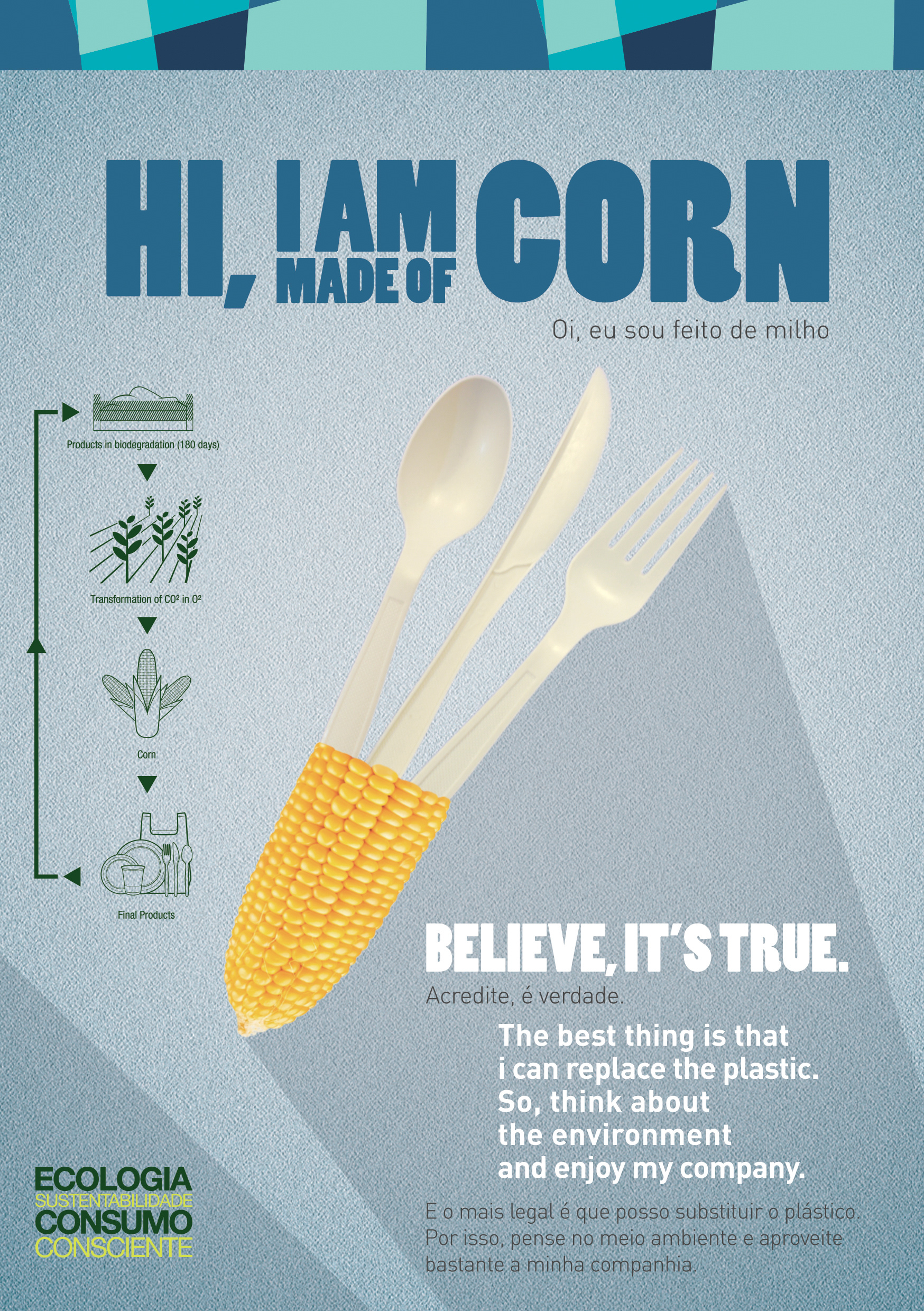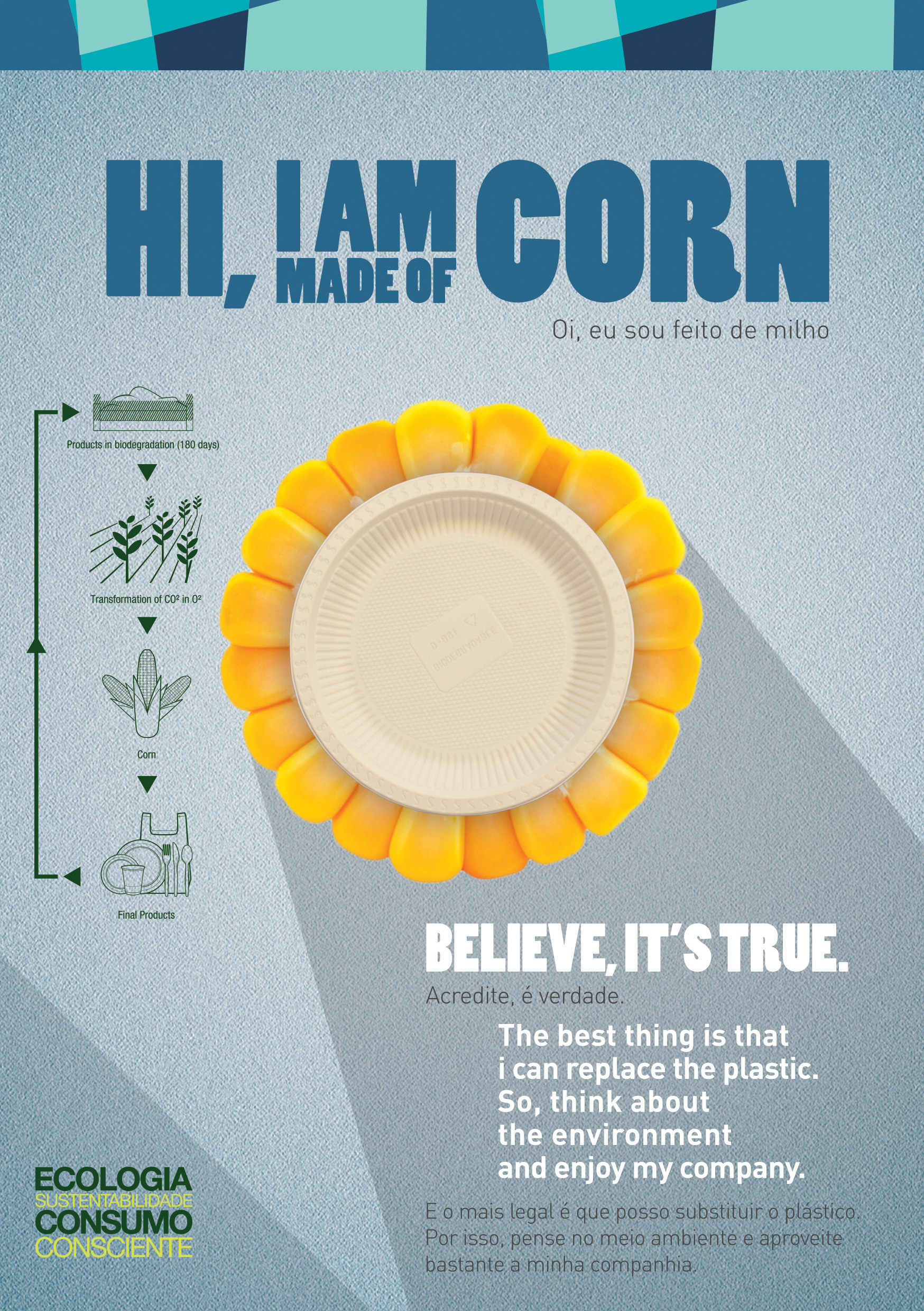 Campanha idealizada para informar sobre os copos, pratos e talheres feitos de milho, utilizados durante os eventos-teste das Olimpíadas, na cidade do Rio de Janeiro.